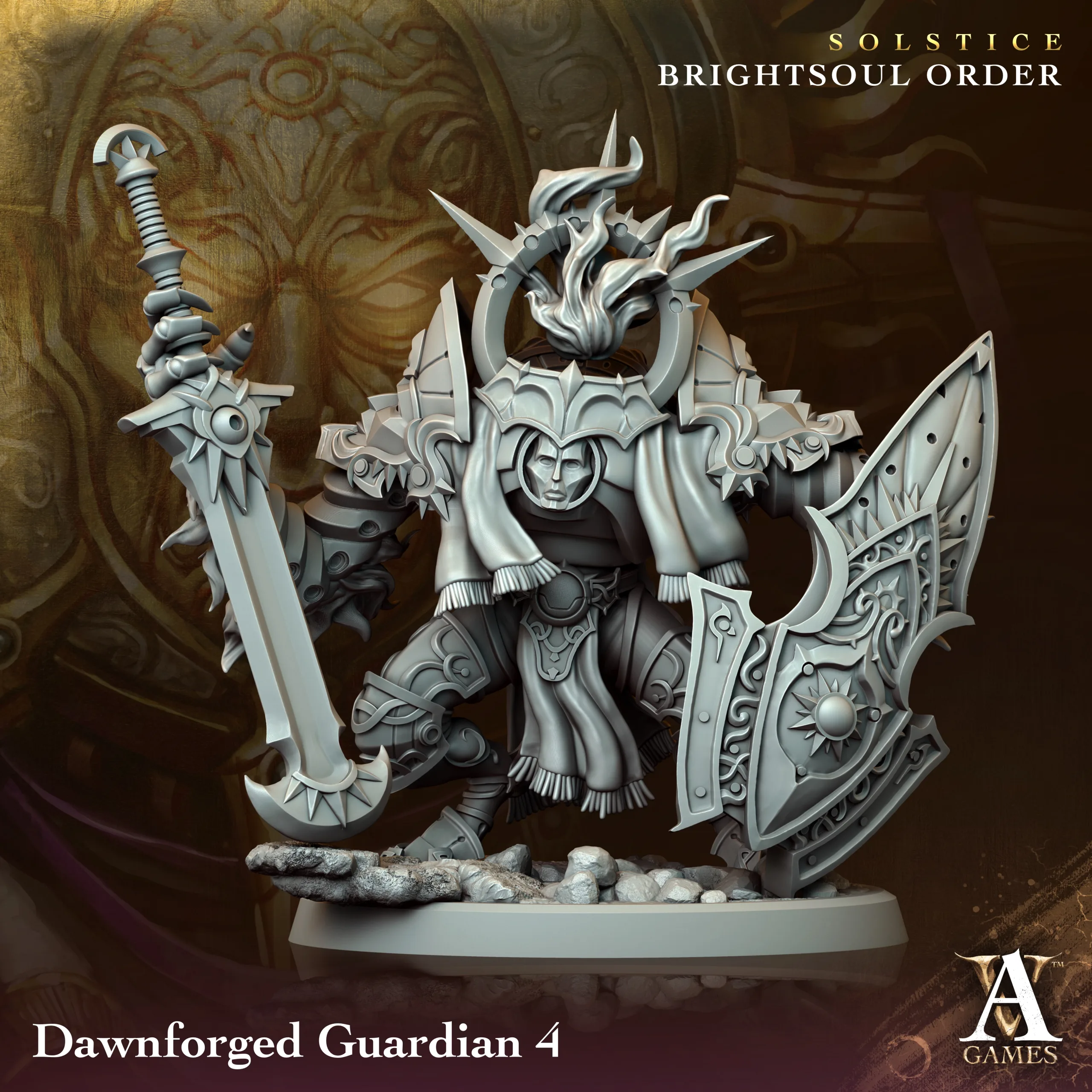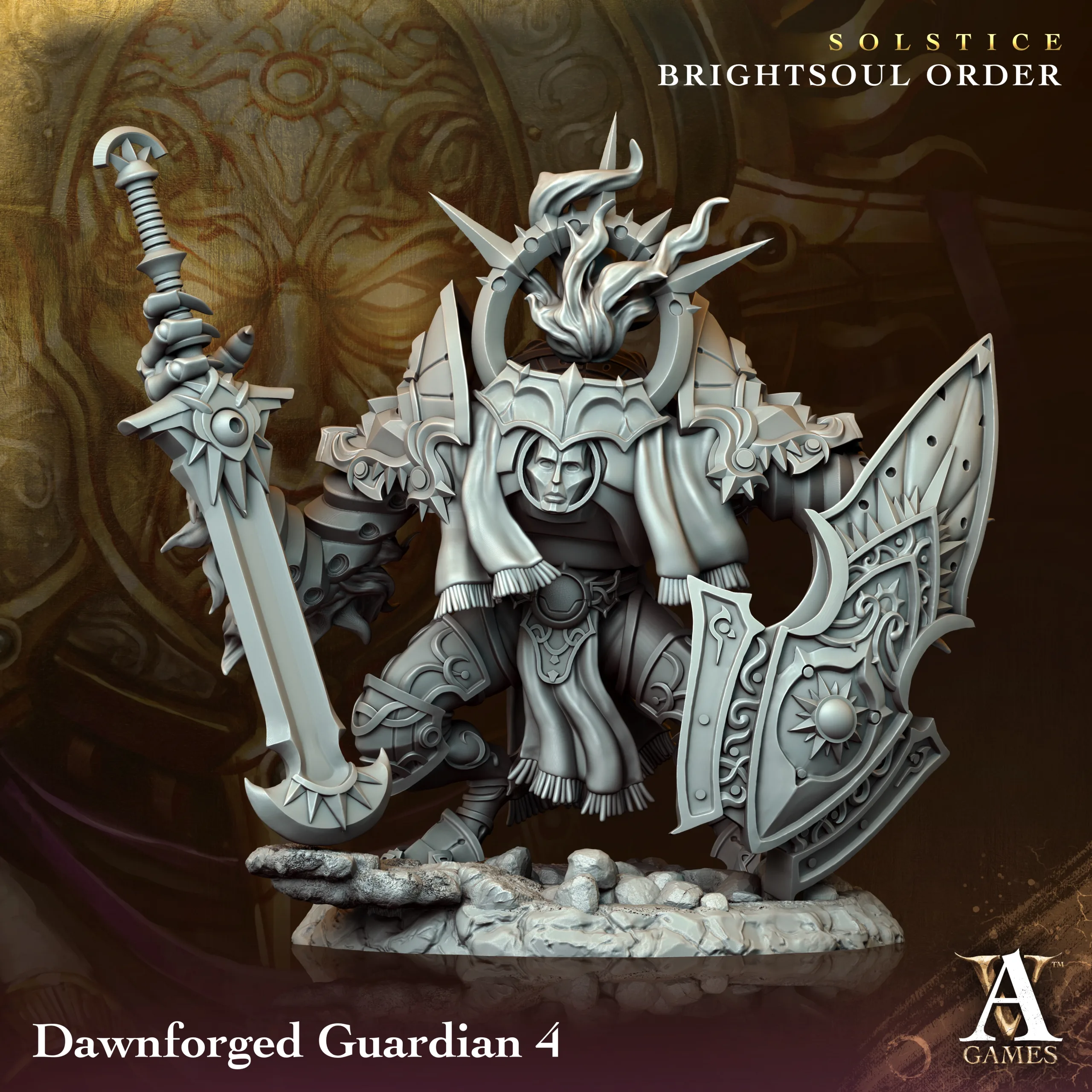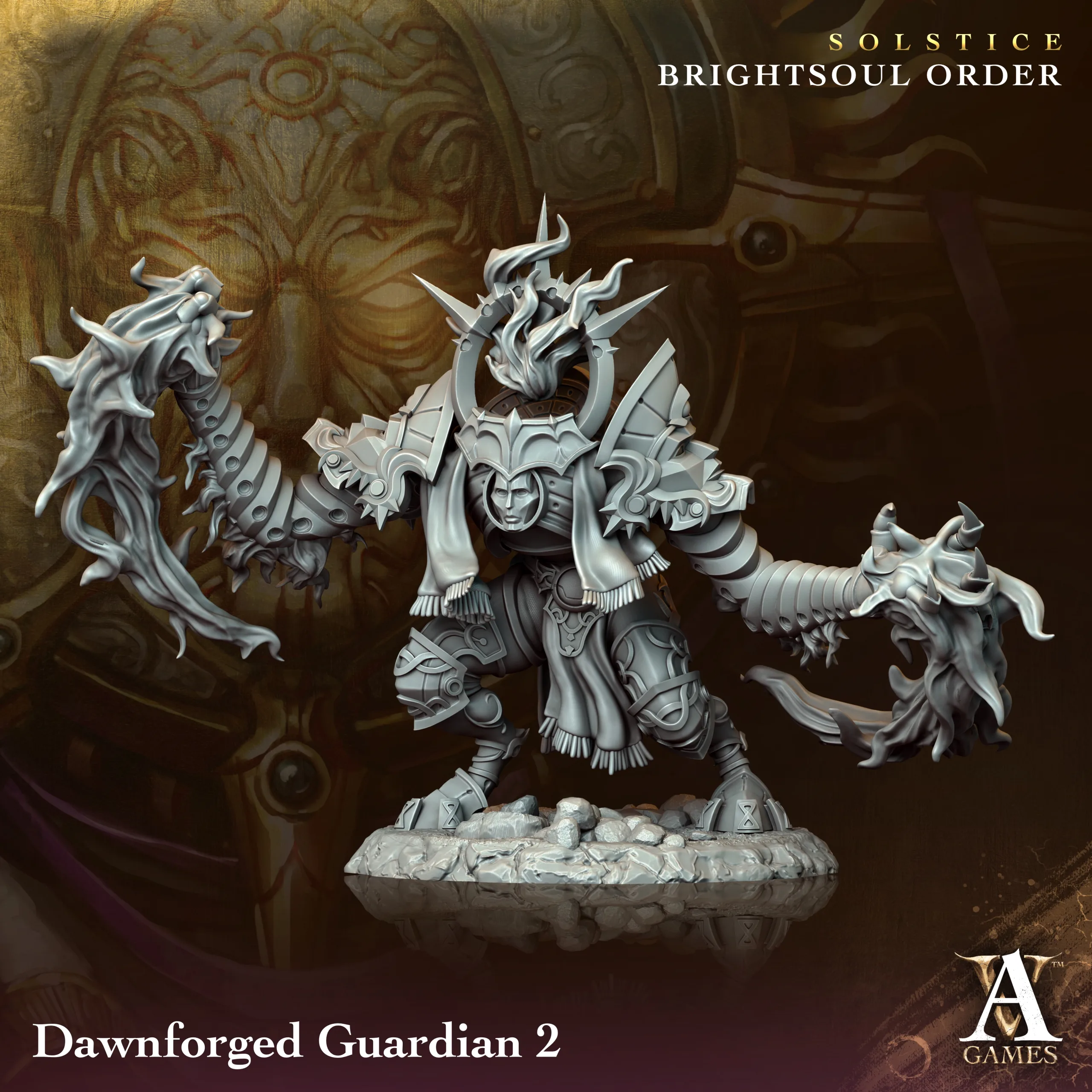 Dawnforged Guardian miniature/s, designed by Archvillain Games.