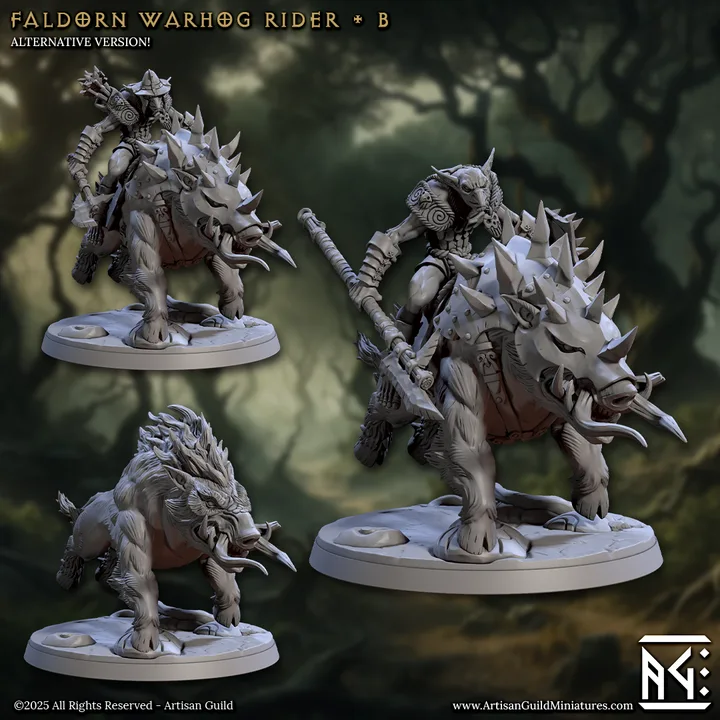 Faldorn Warhog Rider miniature/s, designed by Artisan Guild.