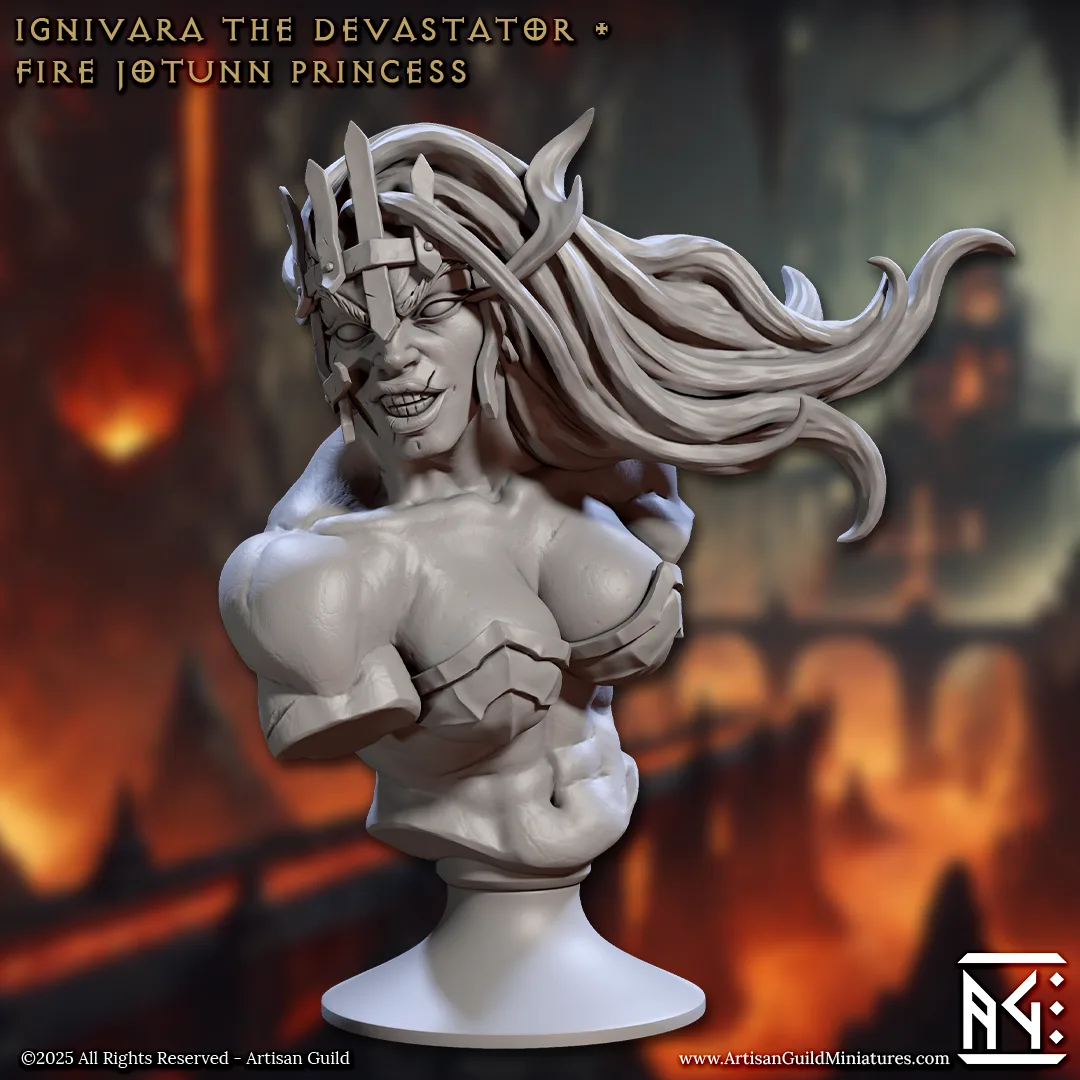 Ignivara the Devastator – Fire Jotun Princess Bust miniature/s, designed by Artisan Guild.