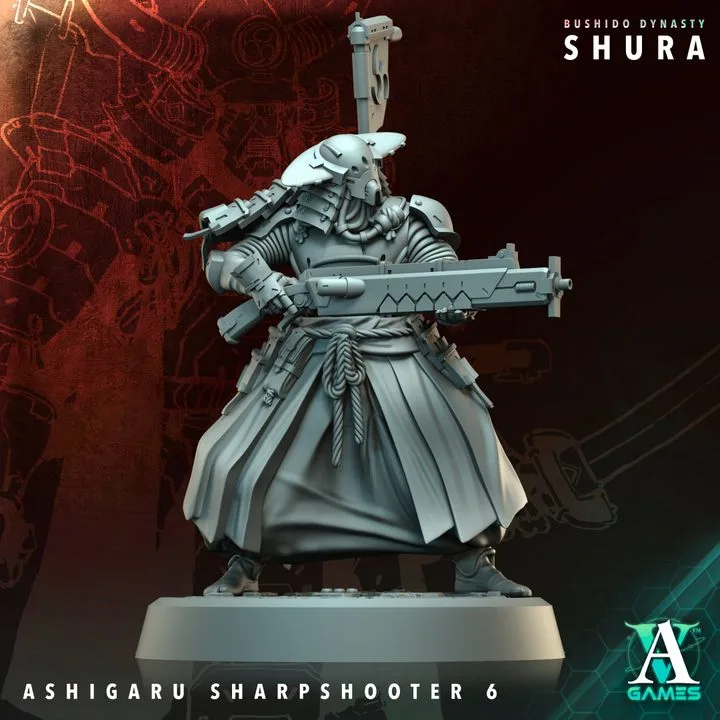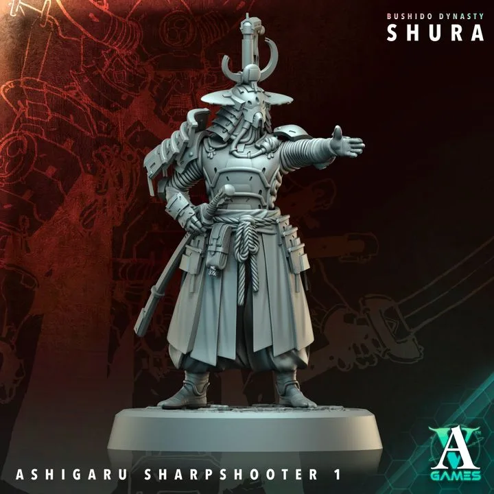 Ashigaru Sharpshooter miniature/s, designed by Archvillain Games.