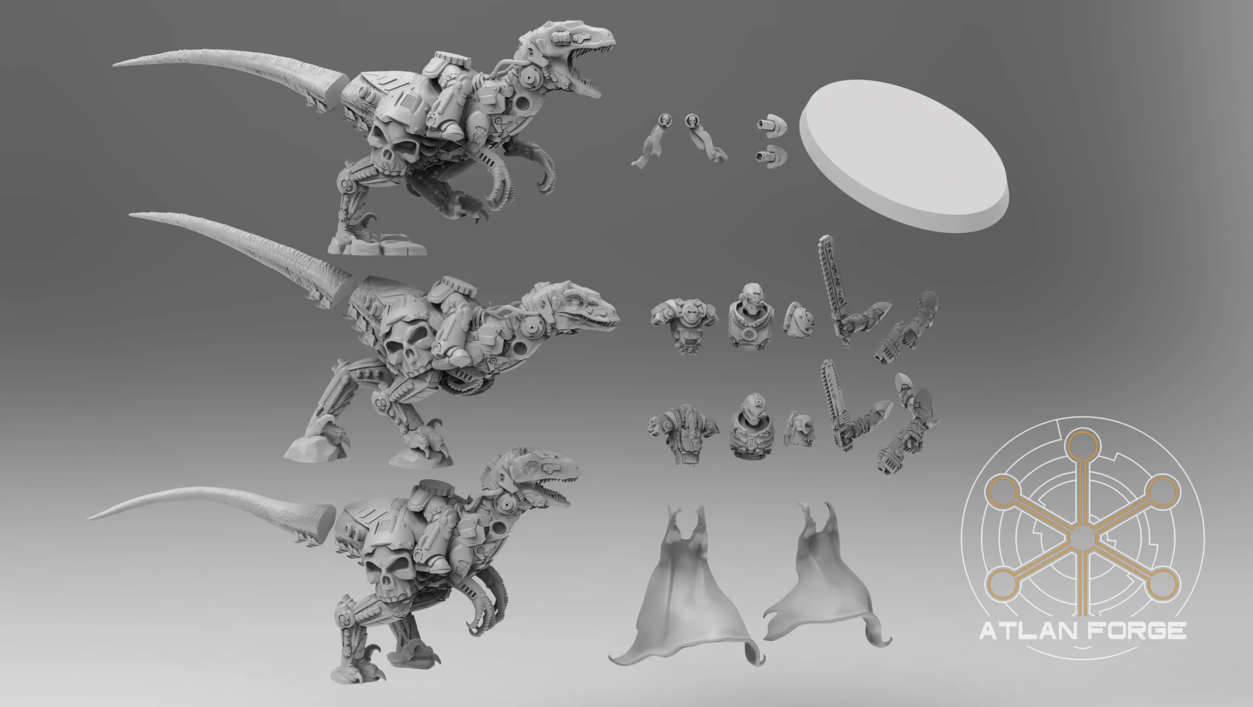 Cyber Velociraptor Riders (3) miniature/s, designed by Atlan Forge.